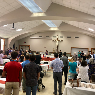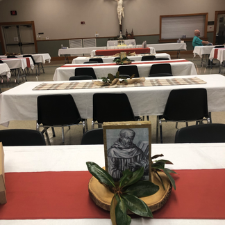 Our parish celebrated our patron saint, St. Bernard, Sunday-August 20. We gathered as a family in the Borel Center following 11 AM mass for fellowship and a delicious meal. The Knights of Columbus cooked spaghetti and CDA decorated and prepared desserts. It was very well attended and there were no leftovers!
