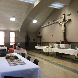 Fr. Reed blessed us and our food and then visited with each table of parishioners. Fr. McIntyre had Baptisms but made it in time eat and celebrate with us.
